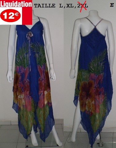 ROBE LONGUE VOILE FOND BLEU TAILLE L et XL