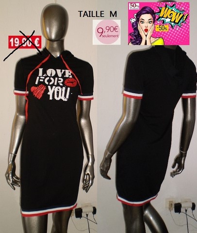 ROBE LOVE NOIR A CAPUCHE TAILLE M