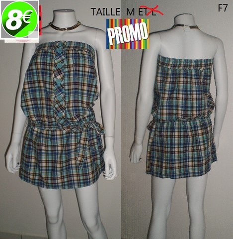 ROBE MADRAS FOND BLEU FONCE TAILLE M ET L