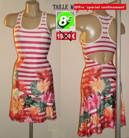 ROBE MARIN ROUGE FLEURIE TAILLE M
