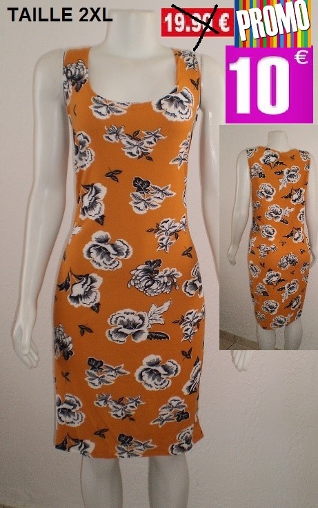 ROBE MOUTARDE FLEUR NOIR TAILLE 2XL
