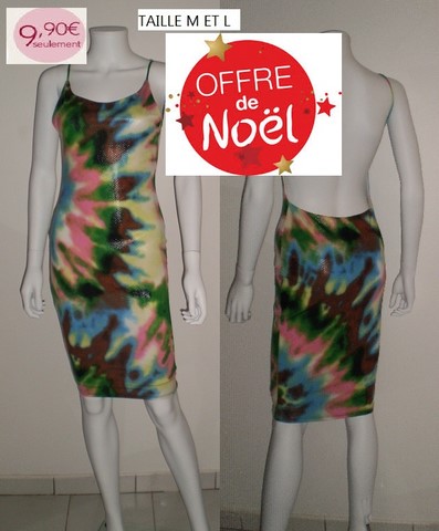 ROBE MULTICOLOR FOND VERT DOS OUVERT TAILLE M ET L