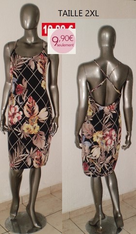 ROBE NOIR A FLEUR DOS CROISE TAILLE 2XL