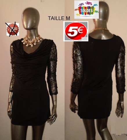 ROBE NOIR MANCHES DENTELLE TAILLE M