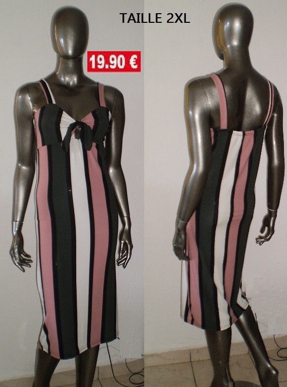 ROBE RAYEE KAKI/ROSE TAILLE 2XL