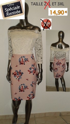 ROBE ROSE HAUT DENTELLE TAILLE 3XL