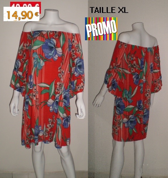 ROBE ROUGE FLEURIE EPAULES NUES taille XL