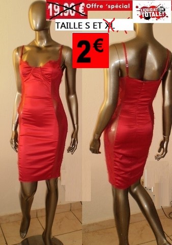 ROBE SATIN ROUGE DENTELLE cote TAILLE S