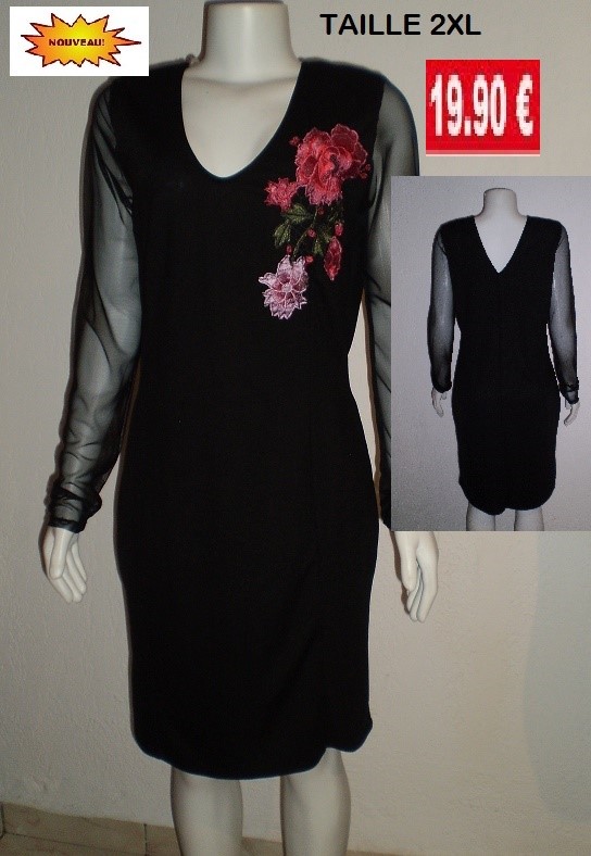 ROBE STRECH NOIR A MANCHES TAILLE 2XL