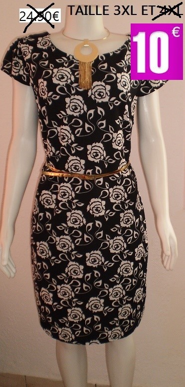 ROBE STRECH NOIR ET BLANC FLEUR TAILLE 3XL
