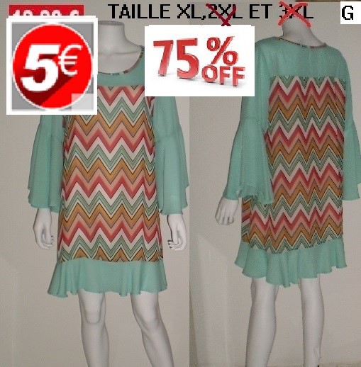 ROBE ZIGZAG MANCHES EN VOILE VERT taille XL.2XL ET 3XL
