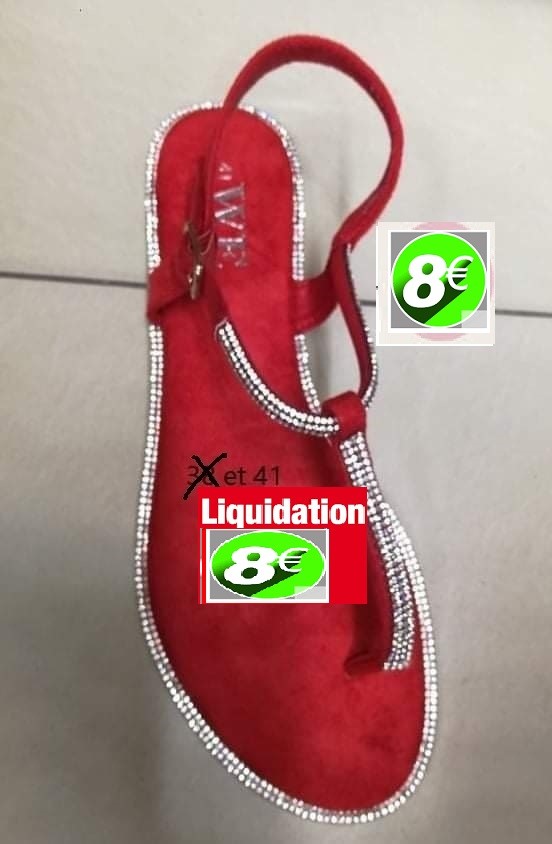 sandales rouge velour/strass 41