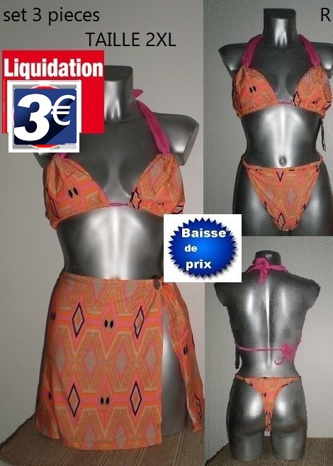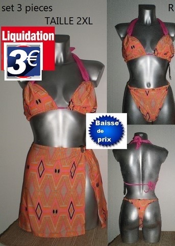 set 3 pieces maillot de bain NOEUD ROSE TAILLE 2XL