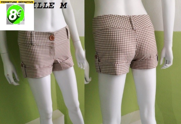 SHORT A CARREAUX MARRON strech TAILLE M