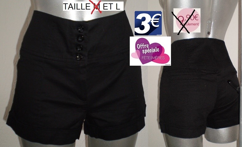 SHORT NOIR BOUTONS TAILLE L