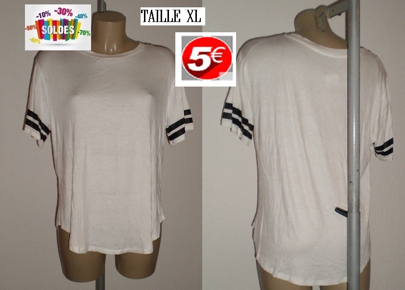 TEE SHIRT BLANC 2 BANDES TAILLE XL