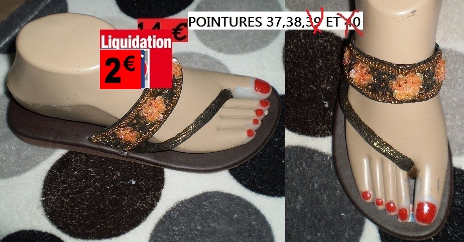 TONGS BRONZE FLEURES ORANGES 37,38,39 ET40