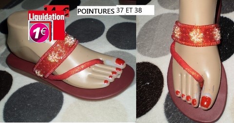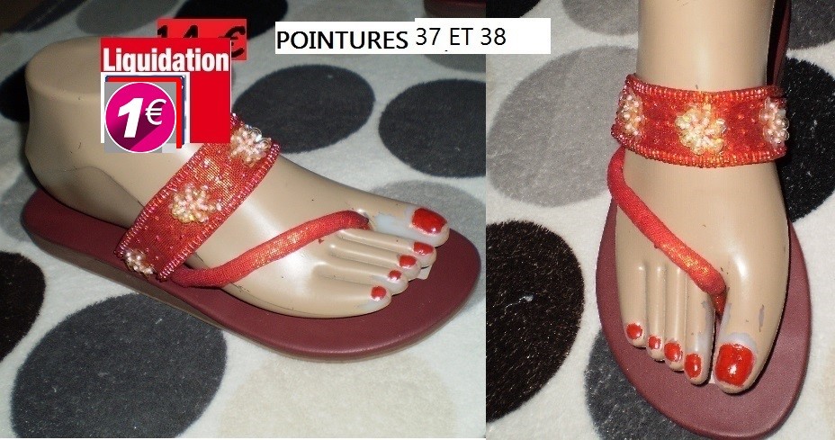 TONGS ROUGE FLEURES 37 ET 38