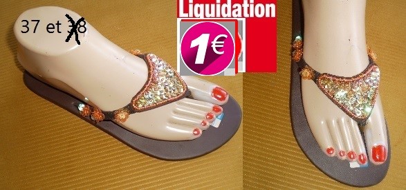 TONGS strass triangle marron 37