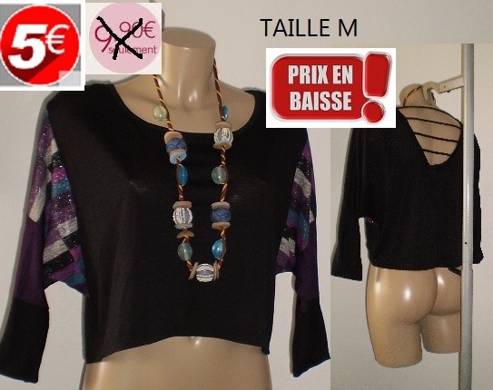 TOP NOIR MANCHE DISCO TAILLE XL