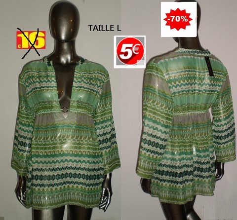 TUNIQUE ANNEAU RAYEE VERT TAILLE L