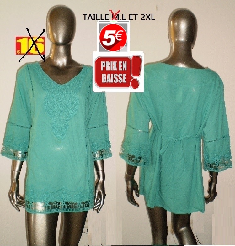 TUNIQUE BRODEE VERTE TAILLE L ET 2XL