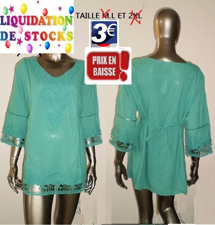 TUNIQUE BRODEE VERTE TAILLE M,L ET 2XL