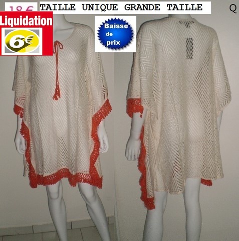 tunique de plage blanche liseret ORANGE TAILLE UNIQUE