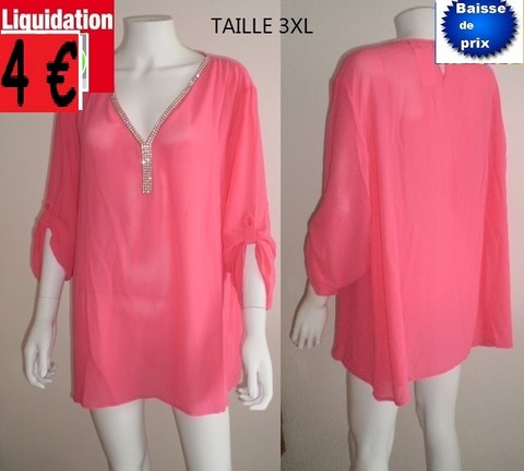 TUNIQUE ROSE AVEC STRASS(F) TAILLE 3XL