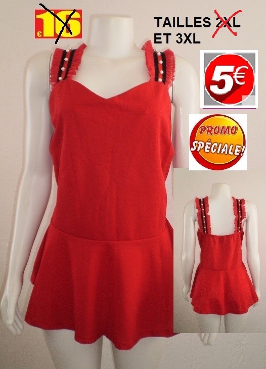 TUNIQUE ROUGE PERLES TAILLE 3XL