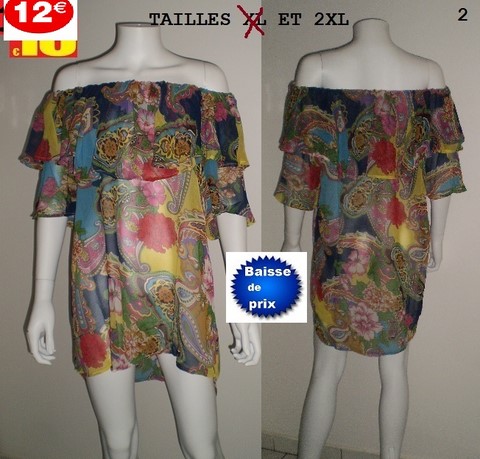 TUNIQUE VOIL EPAULES NUES MULTICOLOR TAILLE 2XL