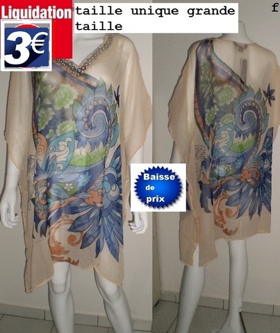 tunique voile beige/bleu taille UNIQUE GRANDE TAILLE