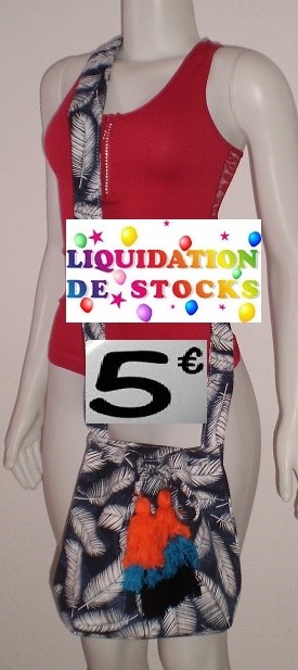 SAC BANDOULIERE POMPONS BLEU