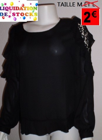 CHEMISIER NOIR MANCHES VOLANTS TAILLE M
