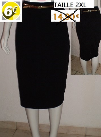 JUPE STRECH NOIR+CEINTURE OR FENDUE AU DOS TAILLE 2XL