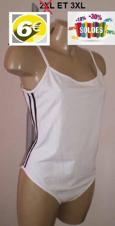 BODY COTON BLANC BANDES NOIRES TAILLES 2XL ET 3XL