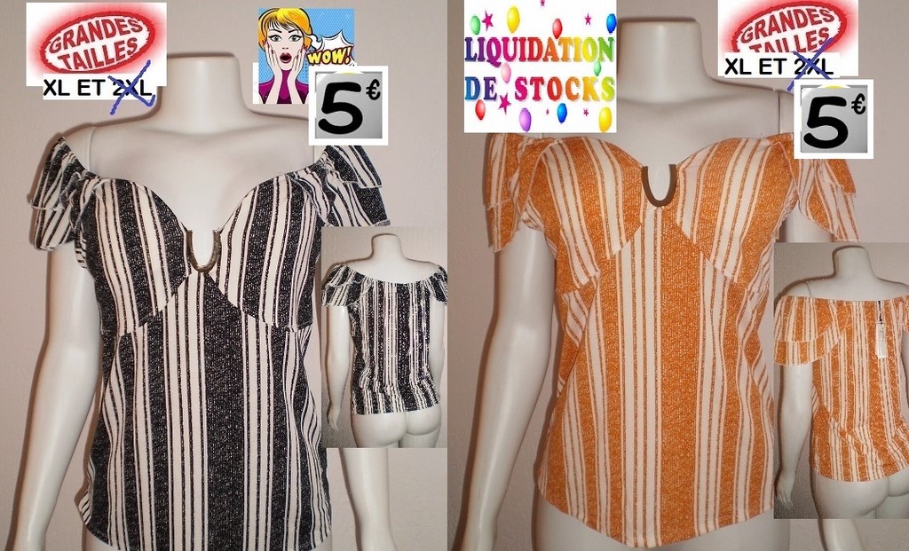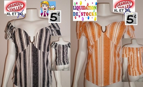 HAUT RAYE NOIR ou MOUTARDE TAILLE XL