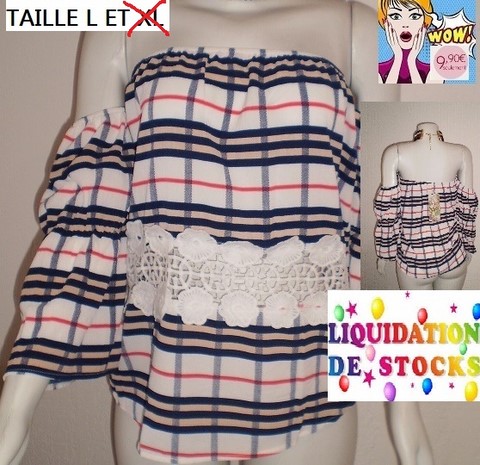 HAUT RAYURES/DENTELLE TAILLE L