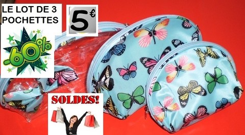 lot de 3 pochettes papillons