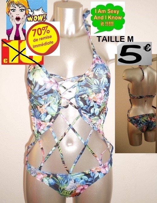 MAILLOT 1 PIECE FLEURI FOND BLEU TAILLE M
