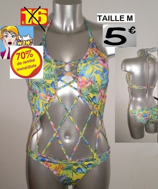 MAILLOT 1 PIECE FLEURI FOND JAUNE TAILLE M