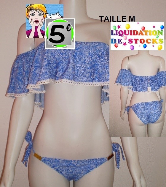 maillot 2 pieces a volant BLEU DENTELLE taille M