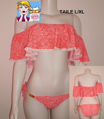 maillot 2 pieces a volant ROUGE DENTELLE taille L/XL