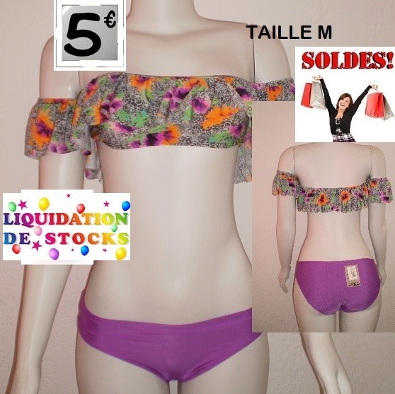 maillot 2 pieces FLEURI VIOLET taille M