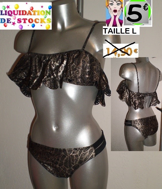 MAILLOT 2 PIECES VOLANT NOIR/ARGENT TAILLE L