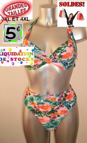 MAILLOT 2PIECES FLEURI FONCE TAILLE 4XL