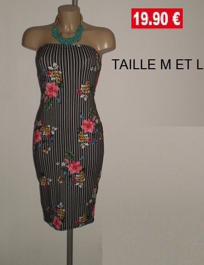 ROBE BUSTIER RAYEE NOIR FLEUR TAILLE M ET L