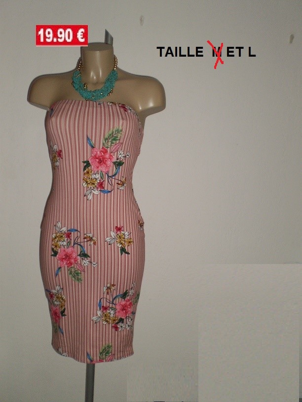 ROBE BUSTIER RAYEE ROSE FLEUR TAILLE L
