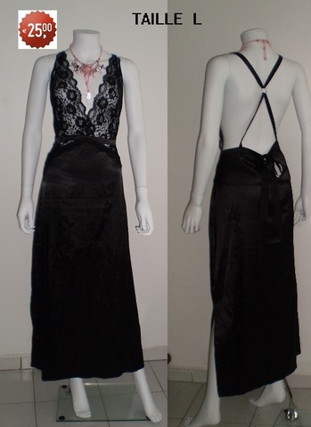 robe longue,satin/dentelle NOIR taille XL