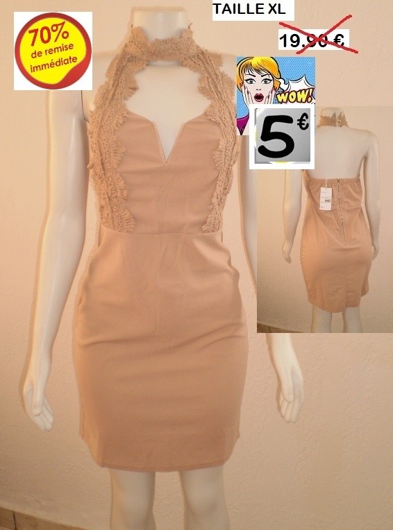ROBE MARRON DOS NU DENTELLE TAILLE XL
